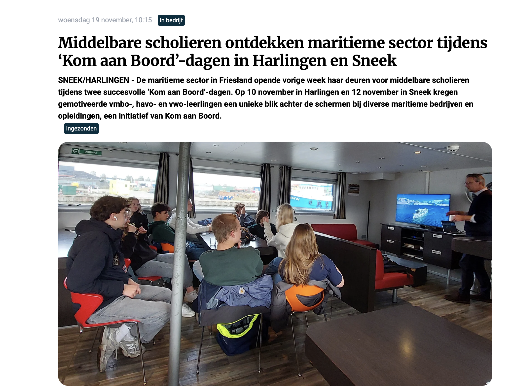 De maritieme wereld is volop in beweging en Stichting Kom aan Boord zorgt dat niemand de boot mist. Als de verbindende schakel tussen het onderwijs, de overheid en het bedrijfsleven enthousiasmeren wij jongeren en zij-instromers voor een glansrijke carrière in de maritieme sector.